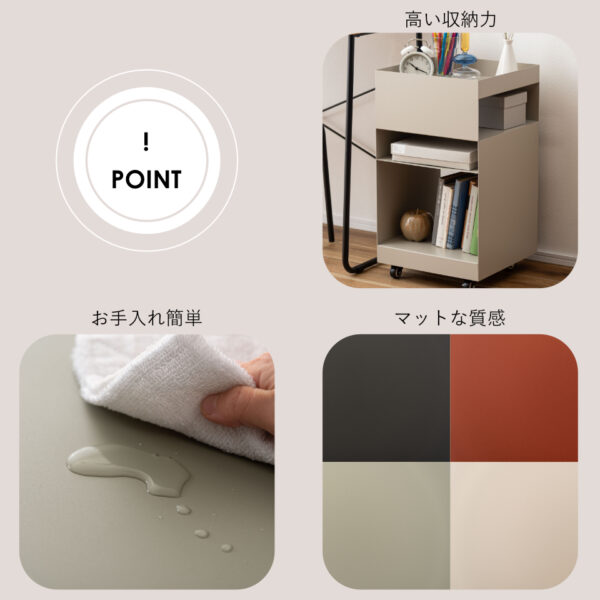キャスター付きなの室内の移動を楽に行うことができ、ライフスタイルやシーンに合わせて活用していただけます。