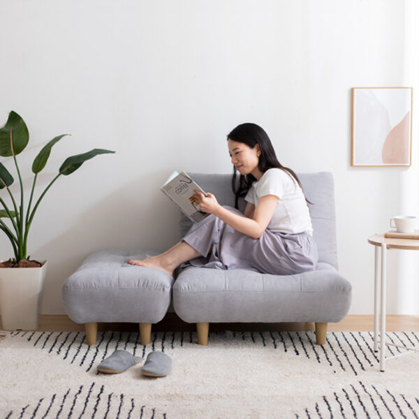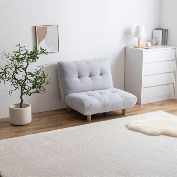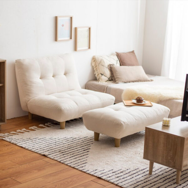 一人暮らしやワンルームでも置きやすいコンパクトサイズで、脚部を取り外せばローソファにもなりお部屋を広く見せることが可能です。また、肩まで優しく受け止めるハイバック設計なので身体をしっかり預けて、ゆったりくつろいでいただけます。