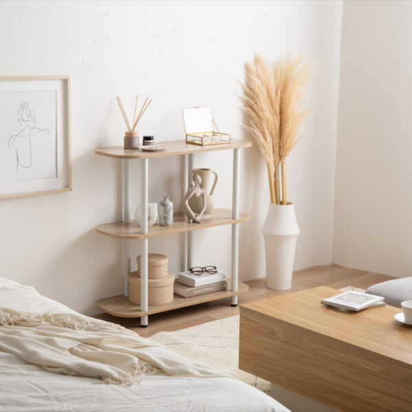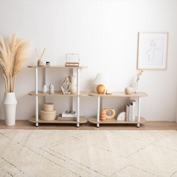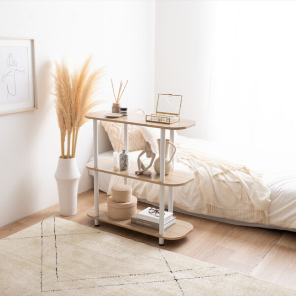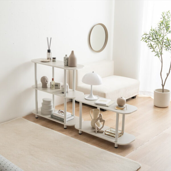 | 韓国インテリアのような丸みを帯びた天板と、ニュアンスカラーの組み合わせはお部屋に馴染みやすく、インテリアをおしゃれに引き立てます。組み立て簡単の仕切りが無いオープンタイプで、一人暮らしやワンルームにもピッタリです。 |